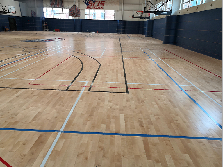 上海長寧**學校籃球館木地板案例