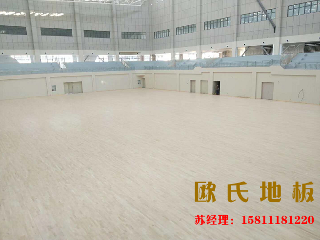2018年10月份歐氏承接該院校體育館實木點鋪設,采用楓樺木一級面板。