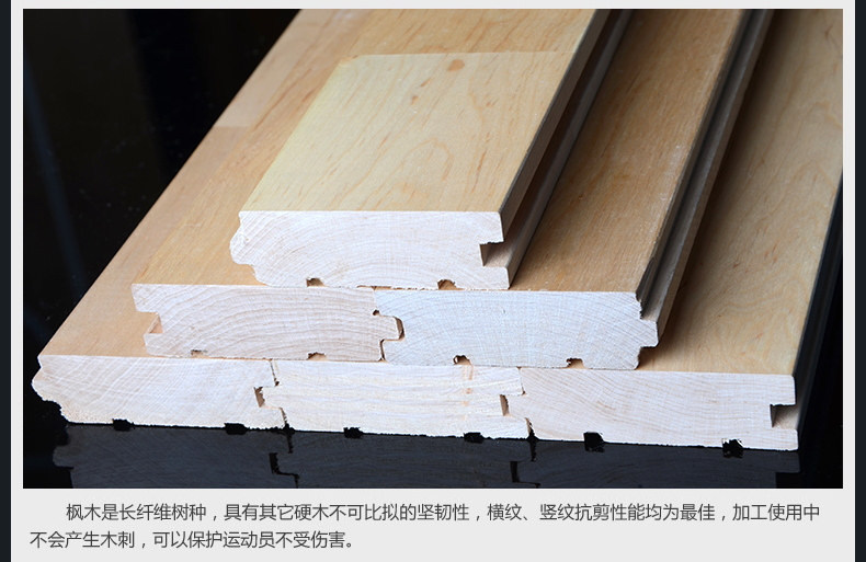 二、體育木地板的面板:一般體育木地板面板都采用楓木和柞木,選材不一樣,價(jià)格就會(huì)不同。同種木材,等級(jí)不同,價(jià)格也會(huì)有差距,A級(jí)的面板會(huì)比B級(jí)的貴一些。當(dāng)然進(jìn)口面板又要比國(guó)產(chǎn)的貴,這個(gè)我們不難理解。